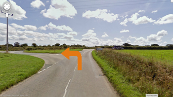 Pass Chacewater Garden Centre on the right then take the left hand turn at the staggered crossroads (as shown).
